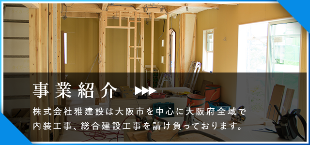株式会社雅建設は大阪府全域で内装工事と総合建設工事を請け負っております。